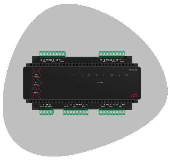 > Ideal for connection in an electrical switch room to control signage, lighting and building automation